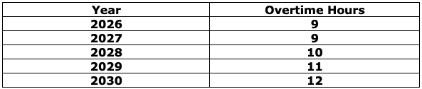 - Gradual implementation of overtime (weekly cap on overtime hours):